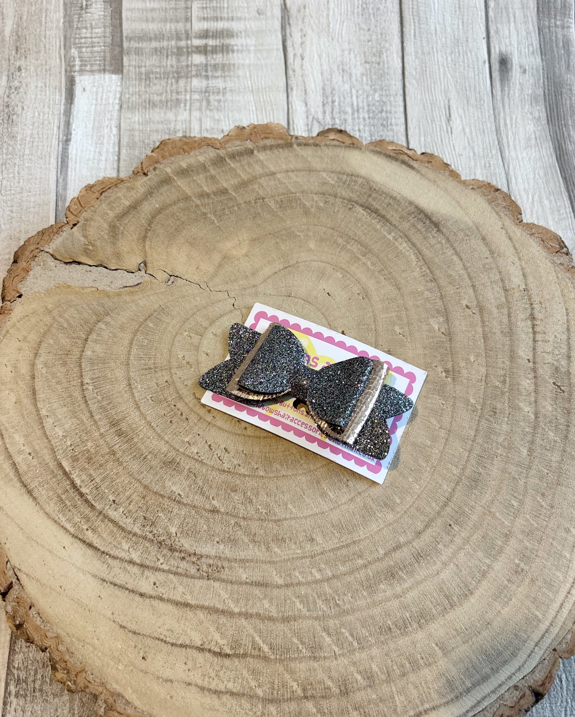 Black Glitter Bow Hair Clip with Silver Detail – Non-Slip